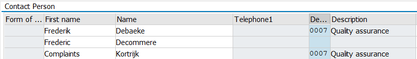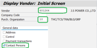 Select the vendor, enter "10" in Purch. Organization ("40" for Televic Rail GmbH) and enable "Contact Persons":