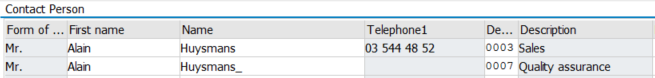 a. If the contact already exists (e.g. already allocated to another Department), add a suffix to the Name of the contact to make his name unique; for example "_", see below: