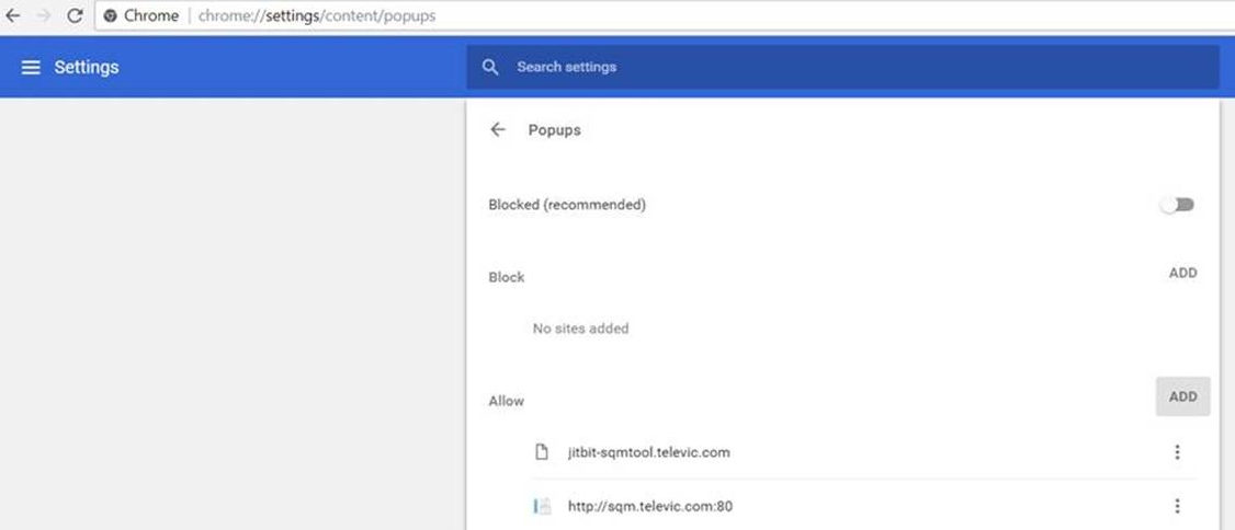 Allow pop-ups from jitbit-sqmtool.televic.com and sqm.televic.com: