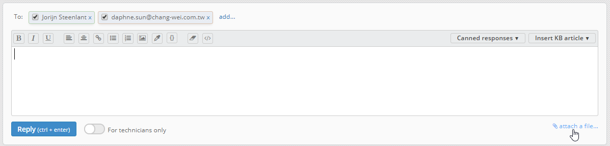 Attach pictures or files by replying in jitbit-sqmtool.televic.com and "attach a file" (multiple files can be attached):