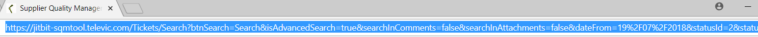 https://jitbit-sqmtool.televic.com/Tickets/Search?btnSearch=Search&isAdvancedSearch=True&searchInComments=false&searchInAttachments=false&dateFrom=19%2F07%2F2018&statusId=2&statusId=1&cf9=Televic+Rail&resultsInCSV=false