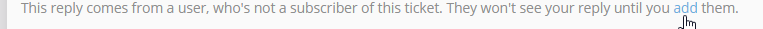 It is very important to know that supplier (external) contacts that reply "incognito", are not added (subscribed) to the ticket. This means that, if you would reply directly from jitbit-sqmtool.televic.com, the "incognito" Email address will not get your reply!