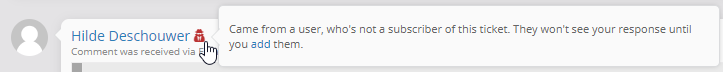 In some cases, when a supplier (or external contact) replies to a ticket, you might notice the "incognito" symbol