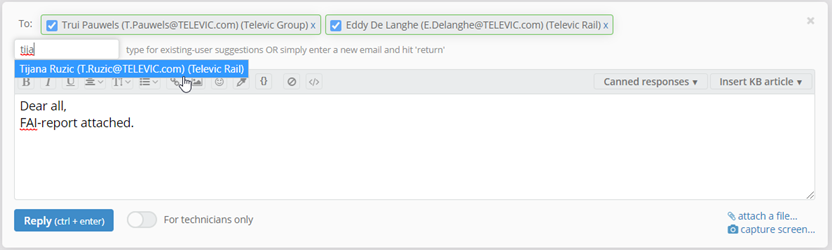 - Add Projectlead TRA to the Reply before communicating the FAI-report: